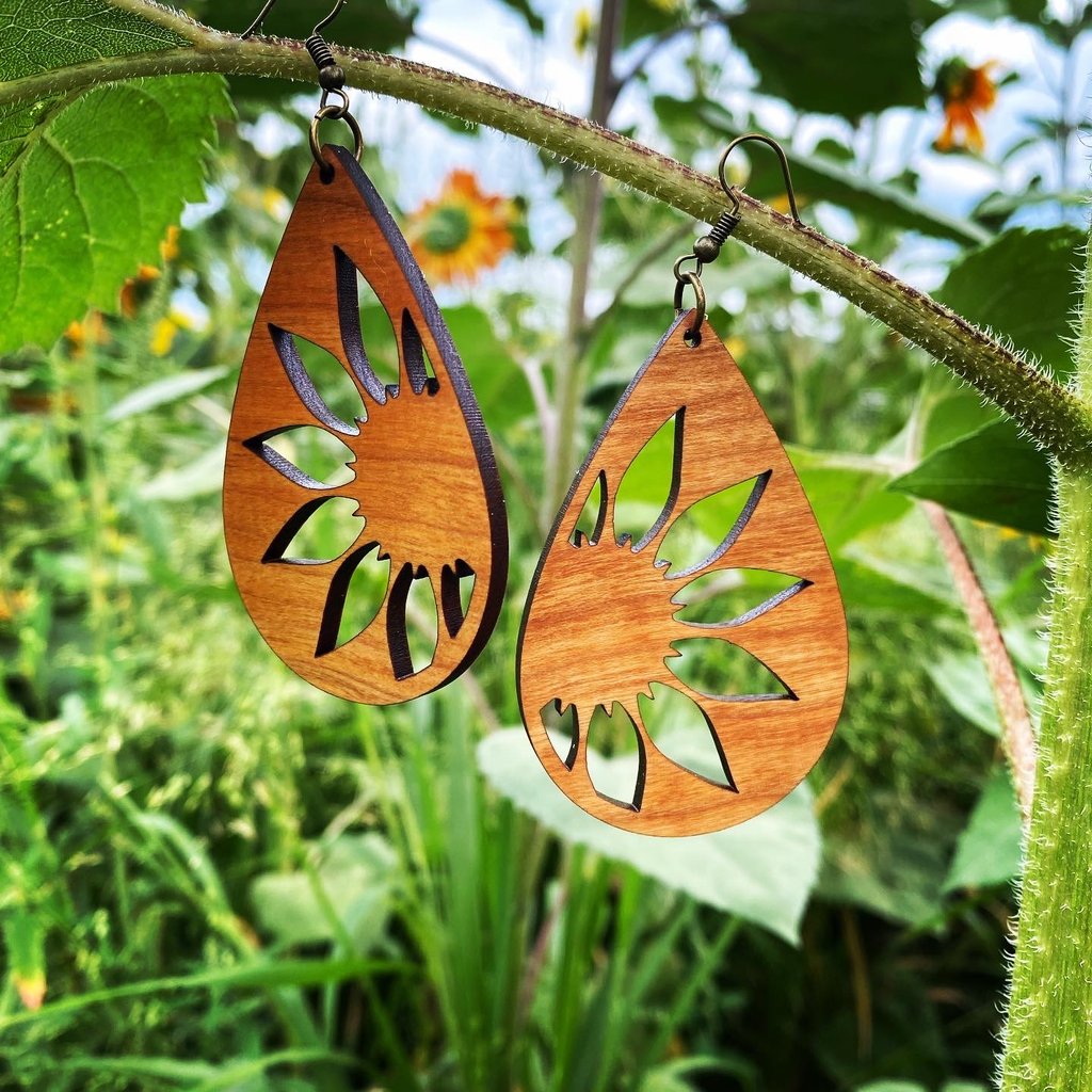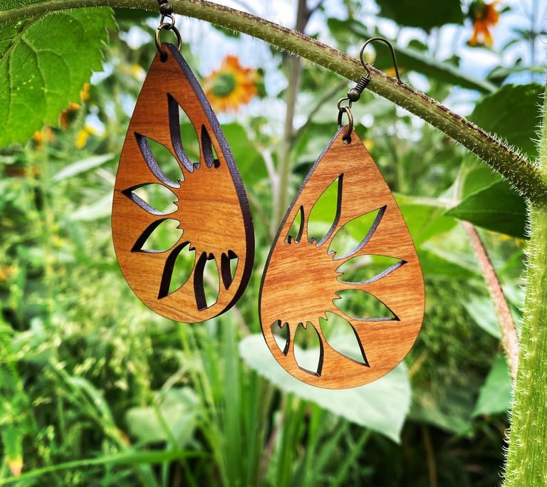 Beautiful earrings crafted from old oak hardwood flooring